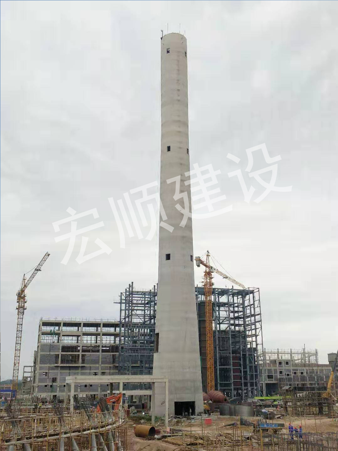 120米水泥煙囪新建現場澆筑階段如何施工?