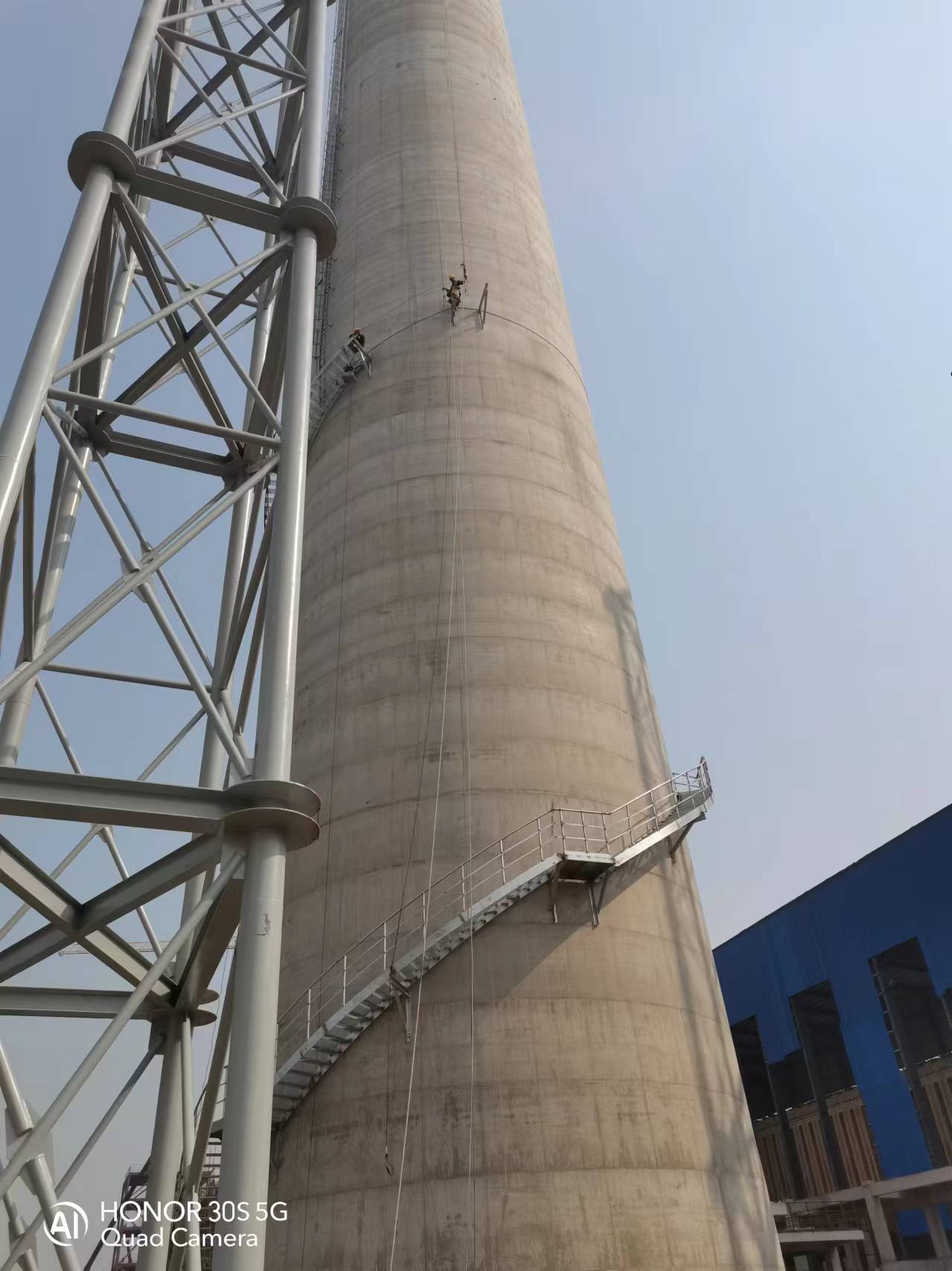凌鋼110米煙囪4人涂刷航標,2人涂刷平臺油漆
